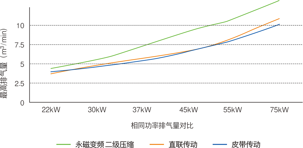 同比普通空壓機(jī)排氣量