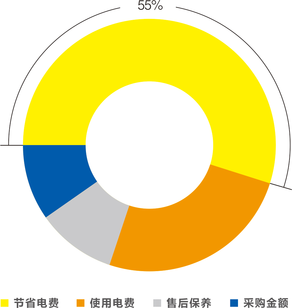 ZLS-2i二級壓縮系列螺桿式空氣壓縮機(jī),以超過國家標(biāo)準(zhǔn)近6%的成績通過能效檢測,更獲得國家工信部節(jié)能目錄認(rèn)證,成功取得國家能效之星標(biāo)識。對于一家每年使用8000小時的用戶來說,使用我司的ZLS-2i二級壓縮空壓機(jī),如果該用戶當(dāng)?shù)氐碾娰M為每度0.8元,同等功率下同比一臺剛跨入一級能效門檻的空壓機(jī),則每年可節(jié)省的電費達(dá)6萬元。同等功率下同比一臺普通二級能效的空壓機(jī),每年更可節(jié)省的電費高達(dá)8萬元!